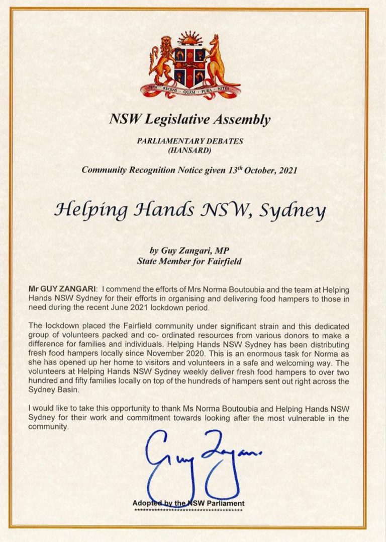 We had the pleasure of having Mr Guy Zangari, MP, who visted us and honored to receive recognition from local leaders, a NSW Legislative Assembly Community Recognition Notice in 2021. we also had the pleasure of Kristina Keneally, join us and give us a helping hand.
